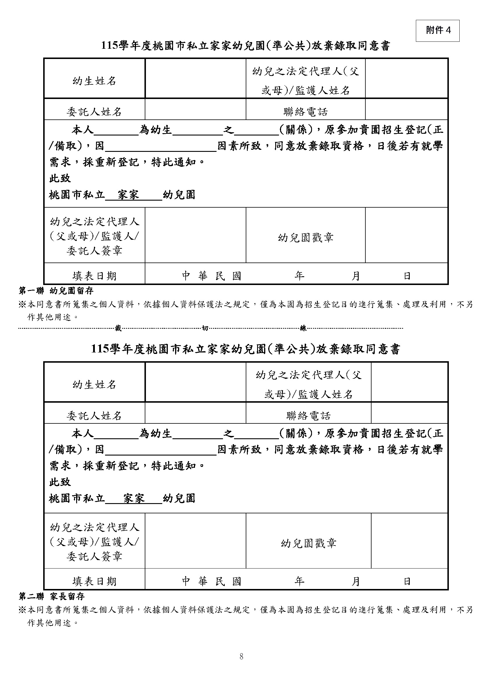 115學年度放棄錄取同意書